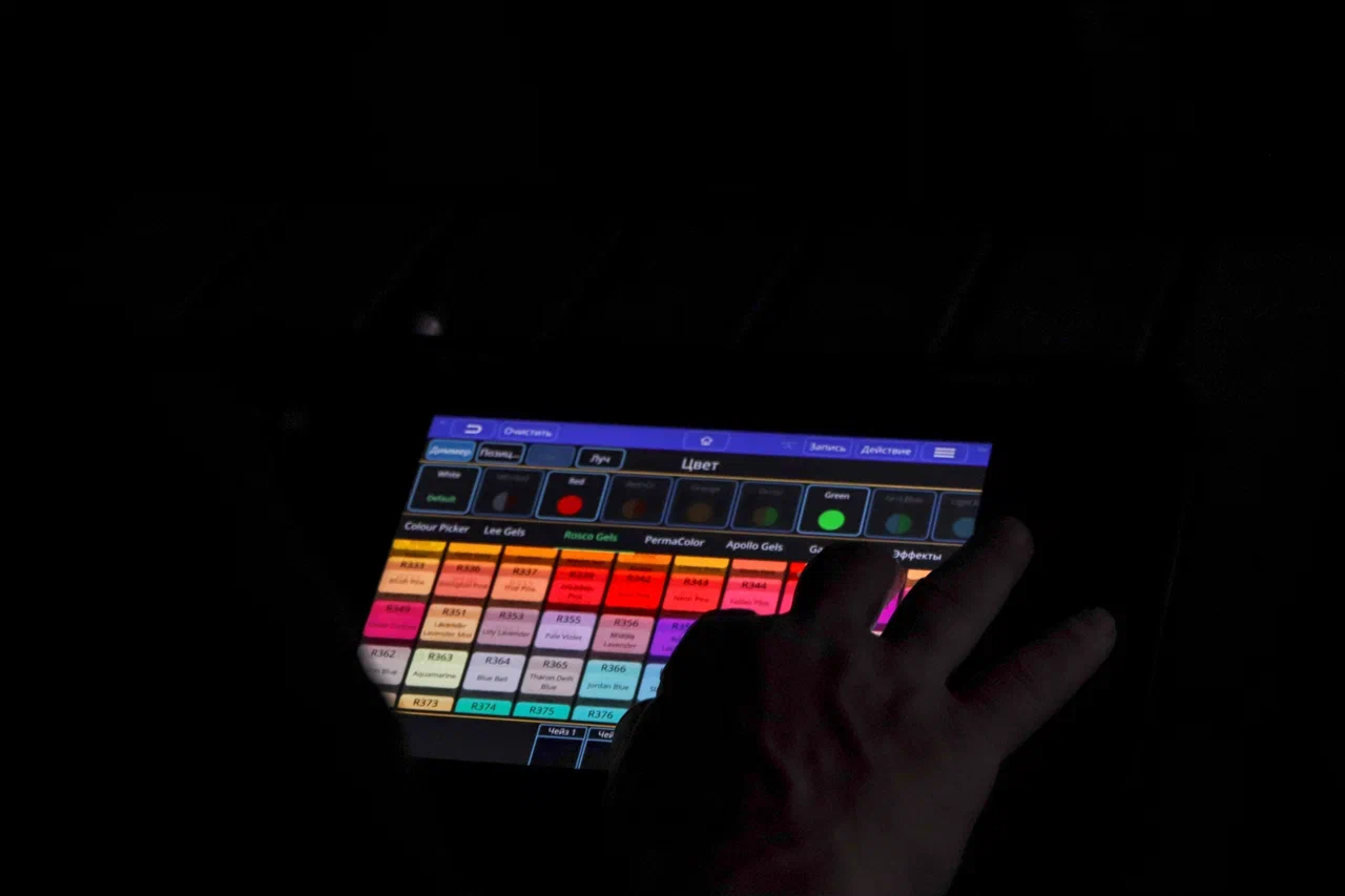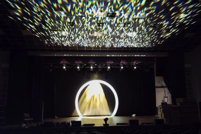 Для модернизации системы было закуплено 16 вращающихся спотов, 6 баров для фоновой заливки цветом, 4 прибора управляемых световых пучков WASH, пульт управления, который включает более 4 тысячи каналов управления - в 8 раз больше, чем в прежнем. Для коммутации оборудования под зрительным залом и над потолком специалисты Центра культуры АГУ проложили 2 км кабелей.