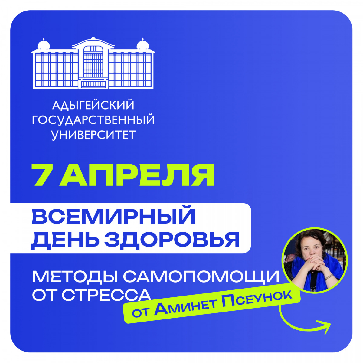 17 апреля в 14:45 в аудитории 225 Адыгейского государственного университета состоится семинар профессора кафедры физиологии человека и животных АГУ, доктора биологических наук Аминет Псеунок «Физиология стресса: механизм адаптации и пути восстановления ресурсов организма».