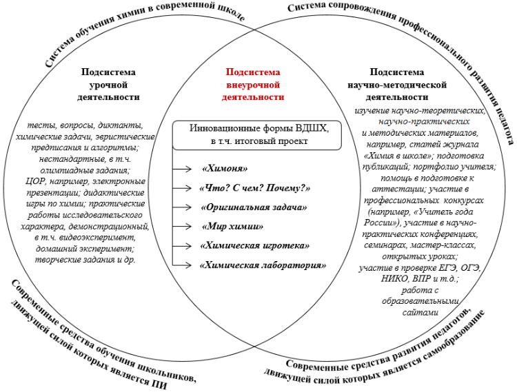 в) взаимосвязи системы обучения химии в современной школе и системы профессионального развития педагогов посредством ВДШХ.