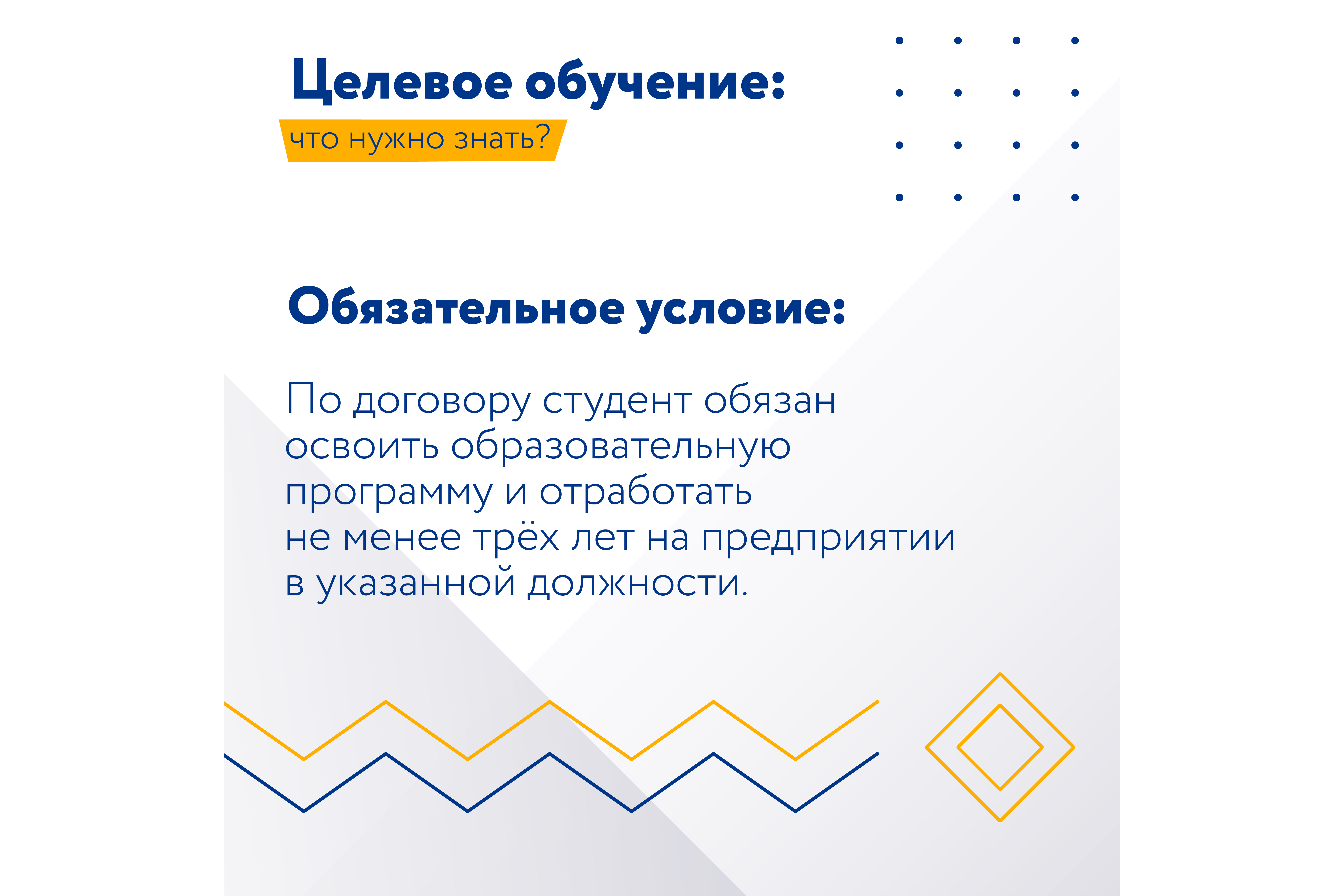 По договору студент обязан освоить образовательную программу и отработать не менее трёх лет на предприятии в указанной должности.