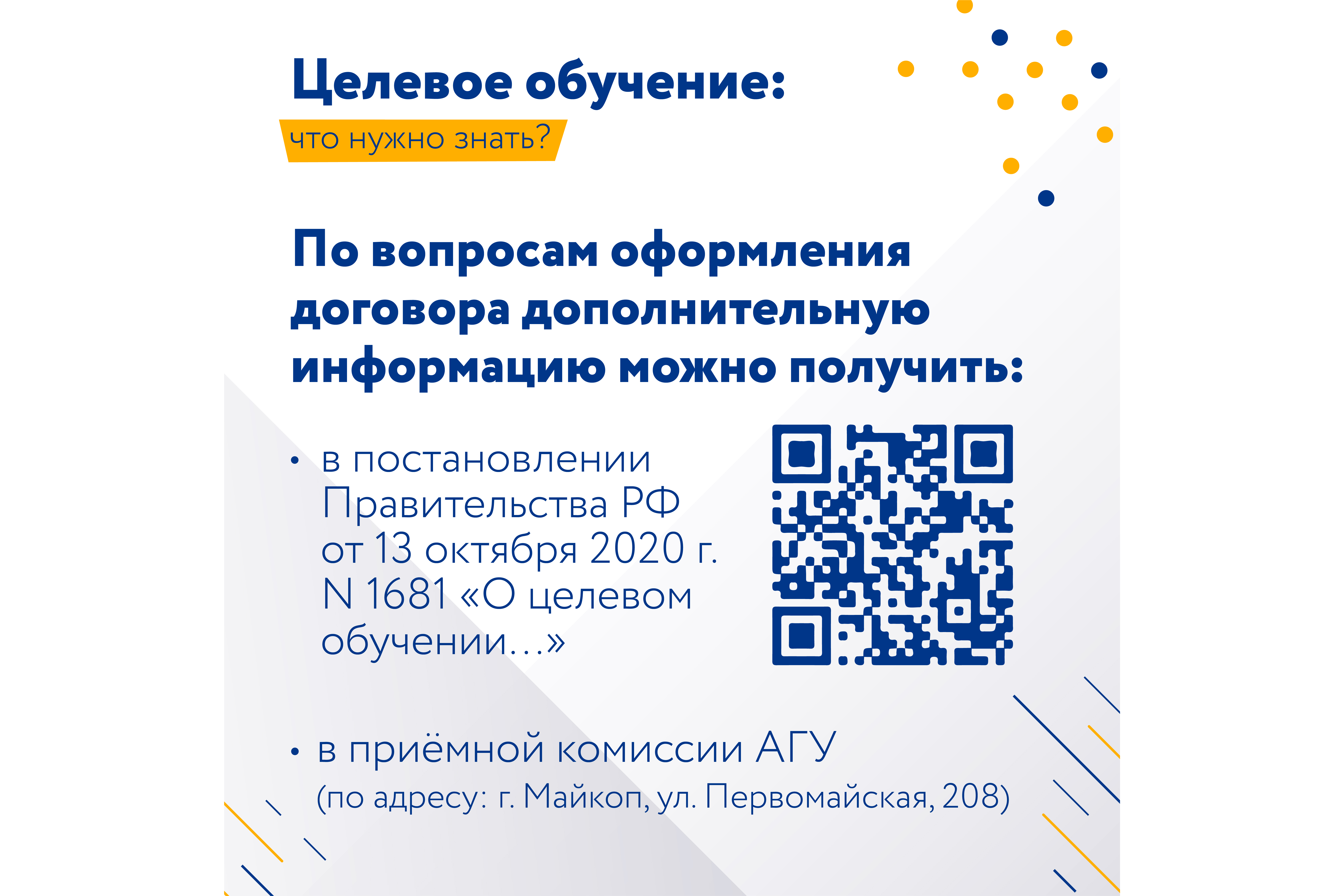Подробнее о целевом обучении в Адыгейском государственном университете и о правилах приёма вы можете узнать на портале абитуриента: http://abiturient.adygnet.ru/