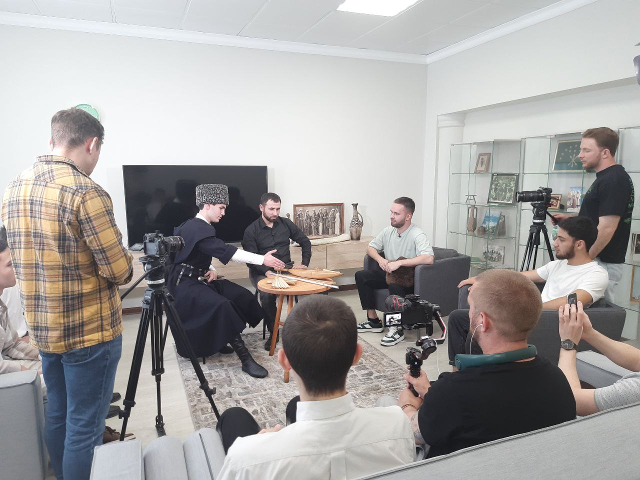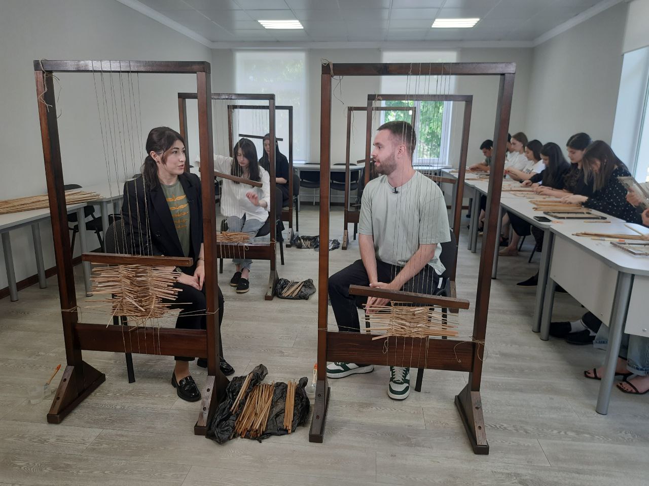 Журналисты взяли интервью у ректора АГУ Дауда Мамия, пообщались с руководителями стратегических и кластерных проектов, реализуемых в рамках программы «Приоритет 2030». Побывали в научных лабораториях и учебных аудиториях, в Ботаническом саду АГУ, зоологическом и геолого-минералогическом музея, Математическом парке. Поучаствовали в репетиции ансамбля народного танца «Нарт», где ведущий Михаил Ломов не только осваивал базовые элементы адыгского танца, но и аккомпанировал танцорам на аккордеоне. В Институте физической культуры и дзюдо АГУ под руководством Пшимафа Гуатыжа он отрабатывал приемы дзюдо, а на факультете адыгейской филологии и культуры – познакомился с особенностями адыгского этикета и поучаствовал в мастер-классах по плетению циновки, золотому шитью и мужскому многоголосному песнопению.